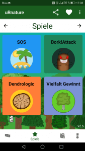 uRnature provides also so-called virtual, GPS based missions that need be played on-site. Almost like Pokemon Go, the player has to go outside and fulfill certain tasks in nature at the virtual stations. Following usually already established educational trails, the mission asks the player to find certain trees, guess their age, answer questions or play a minigame. Currently there are missions in Berlin, Brandenburg and in Rheinland-Pfalz. (And, unfortunately, the app is only available in German.) But more missions are to come!