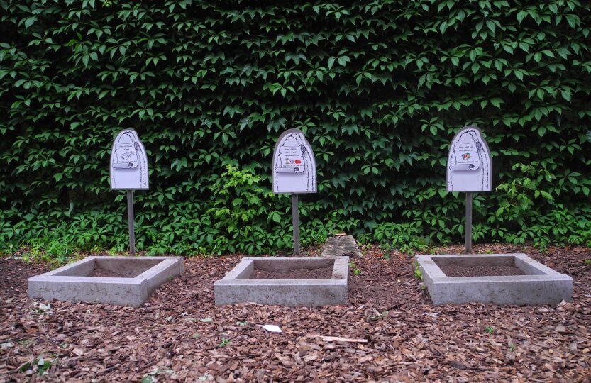 The trash cementary can be found in outdoor classroom of the waste-to-energy plant in Ludwigshafen, Germany (Gemeinschafts-Müllheizkraftwerk Ludwigshafen GmbH (GML)). Thanks to their environmental education concept, young people from kindergarten to senior grade can visit the GML and learn what happens with their trash, why it is important to separate waste and how it can be used to produce heat and energy. The concepts were developed by the University of Landau and adjusted to the different age groups: Kids from kindergarten learn the very basics of waste separation (how and why?), older children can study the operating principle of a steam engine. And one highlight is always the terrarium with living stick insects. Are they producing waste as well? What happens then? And who is brave enough to hold one?