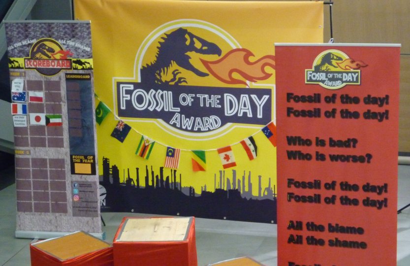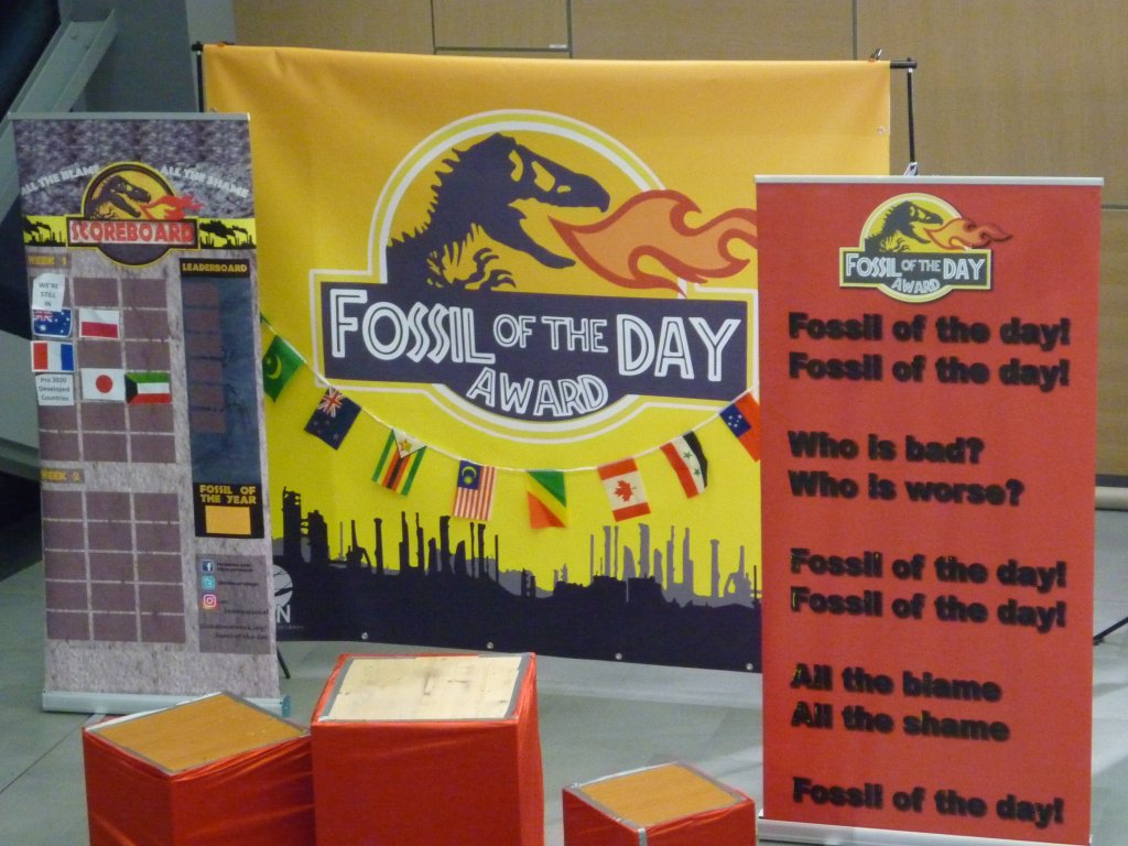 The “Fossil of the Day” Awards exist since 1999 and are an initiative of the Climate Action Network (CAN) to ironically honor those parties, countries or organisations which act in a bad manner, hindering the progress of the negotiations at COP and counteracting the common will to achieve the climate target set in the Paris Agreement. Aiming for the attention of delegates and directly pointing fingers at the “bad ones”, the Award “winner” of every conference day is announced at 6 pm in the Bula zone in the foyer of the