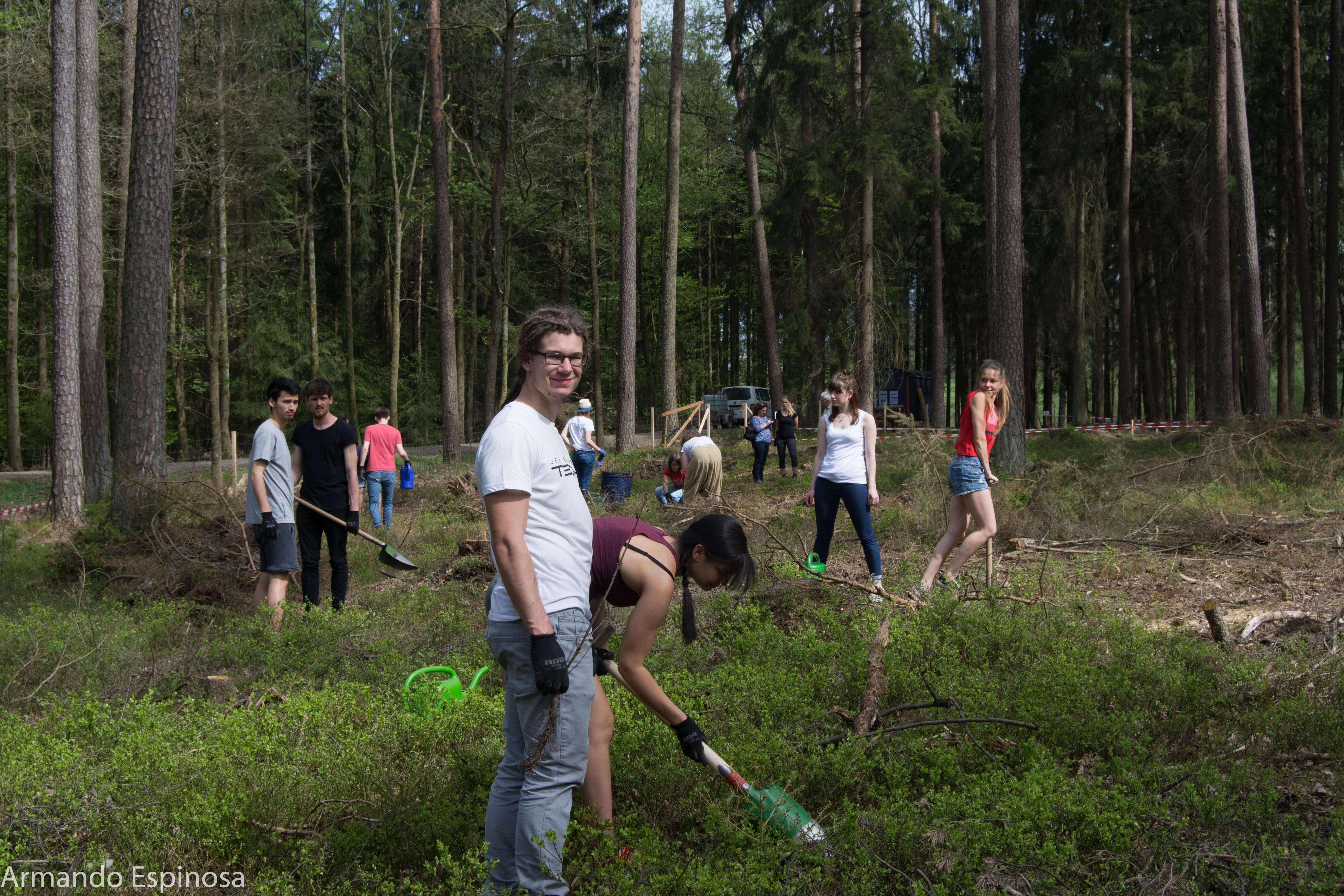 “In those three days, 245 people have helped us to plant 4719 saplings”, Kun says. The 28-year old GCE student from South Korea had the idea for Klimawald already last year. “I wanted to something on the ground together with my fellow students. To have a good time and plant trees somewhere in Bavaria.” As trees (and plants in general) work as carbon sinks, because they absorb CO2 through their leaves, this would contribute to reducing our carbon footprints. As GCE students travel quite a lot due to conferences, internships and science schools, Klimawald was intended as a compensation measure for this study programme.