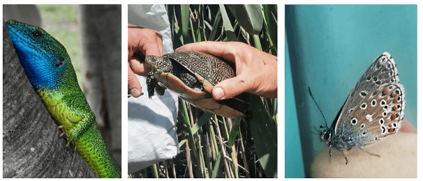 Figure 4: The western green lizard, European pond turtle, and common blue butterfly.