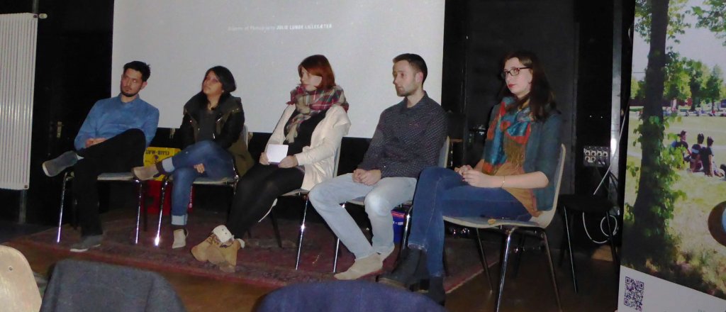 The Glashaus was well-filled for the movie presentation and around half of the audience stayed for the follow-up panel discussion. Alicia Medina Valdiviezo from Peru and Judith Schepers, Martin Baur, Patrick von Jeetze and Katharina Funk from Germany spoke about their impressions from COP23: They felt – similarly to Kisilu – a certain euphoria to be able to attend the world’s biggest climate conference. But then the negotiations stretched over days and all that was going on was mostly strategical manoeuvres. Thus, it was not easy to believe in a successful outcome of the COP. Did the politicians really want to reach an agreement? Did they really care to limit the warming to 1,5°C? Did they realize the importance of immediate action? Patrick von Jeetze stressed that especially the pre-2020 actions are crucial. Almost nobody is aware that Germany needs to become climate neutral within 20 years to fulfil its requirements according to the Paris agreement. Nevertheless, it recently became clear that Germany will fail its climate goals for 2020, mainly because of an enlargement of the transport sector. Judith Schepers talked about the island nation Kiribati, which will be destroyed in the near future – by hurricanes caused by climate change. Its inhabitants have only one option: humane migration. And Alicia Medina Valdiviezo indicated that especially indigenous people will be affected by climate change. She illustrated how indigenous communities do have their own coping mechanisms which are nevertheless presumed to be “non- scientific” by the science community. This traditional knowledge should come to the fore at climate conferences.