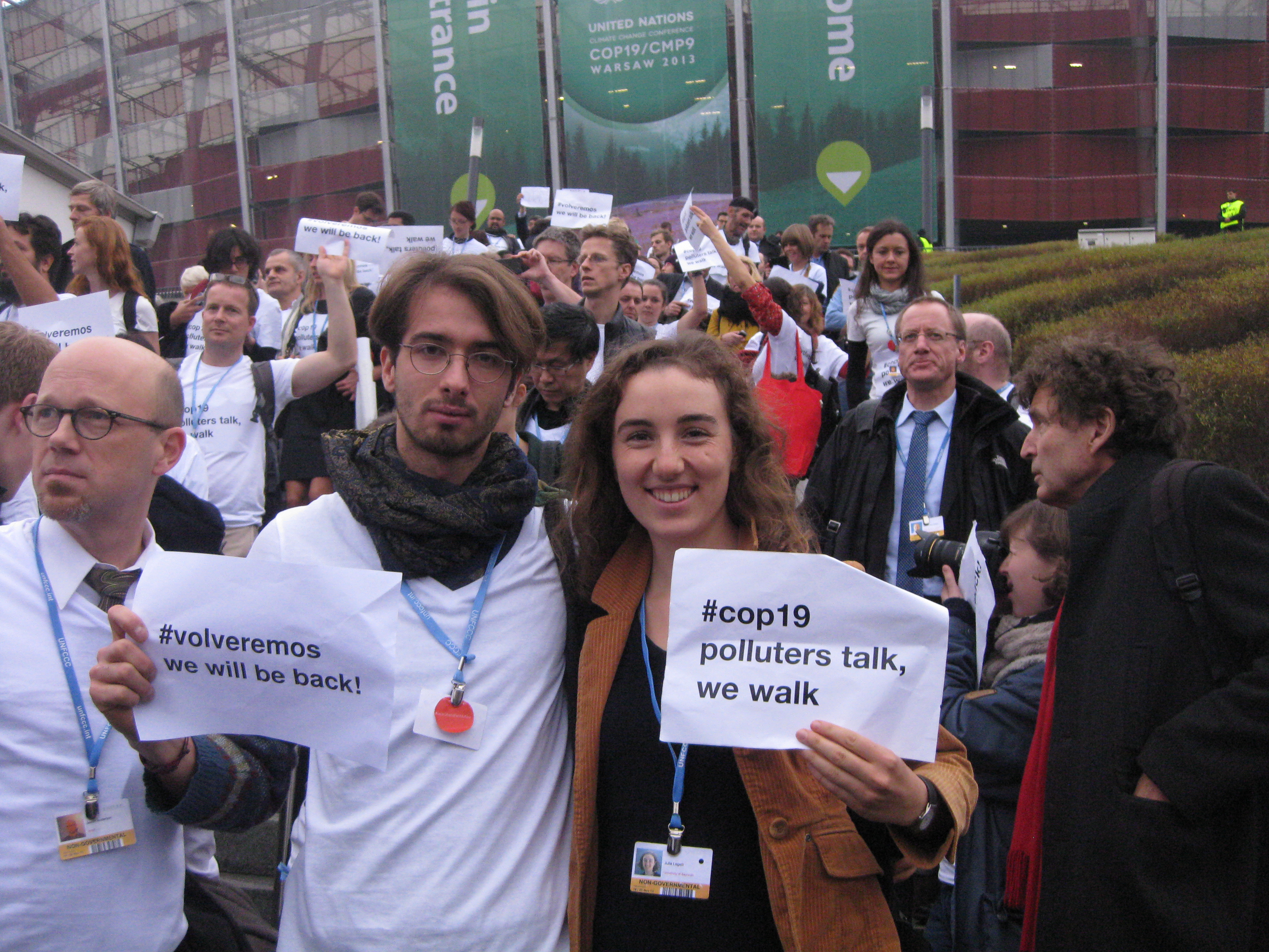 At lunch time today, several NGOs partnered up and “walked out” of COP19. They express their disappointment by the unsuccessful negotiations. Instead of wasting their time at the climate talks here in Warsaw, they will focus on mobilising people to push their governments to take serious climate action.