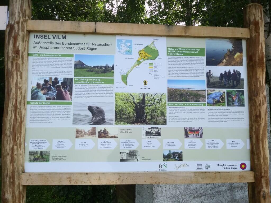 On Monday, the 2nd of August, 2021, my alarm clock rang early in the morning. It took me around 9 hours to travel by train from Hesse to Ruegen, Germany’s largest island in the North-East. After arriving, I was happy to find myself on the second to last ferry boat of the day from the Island of Ruegen to the Isle of Vilm. After another 20 minutes running time, the other passengers and I took our first steps on the isle. The passengers were young academics who participated in the “interdisciplinary science meeting on biodiversity research under the UN Convention on Biological Diversity (CBD),” which was organised by the “International Academy for Nature Conservation Isle of Vilm” (INA). The INA is part of a branch office of the German Federal Agency for Nature Conservation (BfN), which is one of the government’s departmental research agencies and works in the area of responsibility of the German federal environment ministry. The interdisciplinary science meeting takes place every summer and mainly addresses bachelor´s, master´s and Ph.D. students. Mrs. Stadler, the meeting host, warmly welcomed the students and showed the way to the reception desk. Along the way, a big information board close to the harbour provides every arriving guest with information on the fascinating history of the isle: