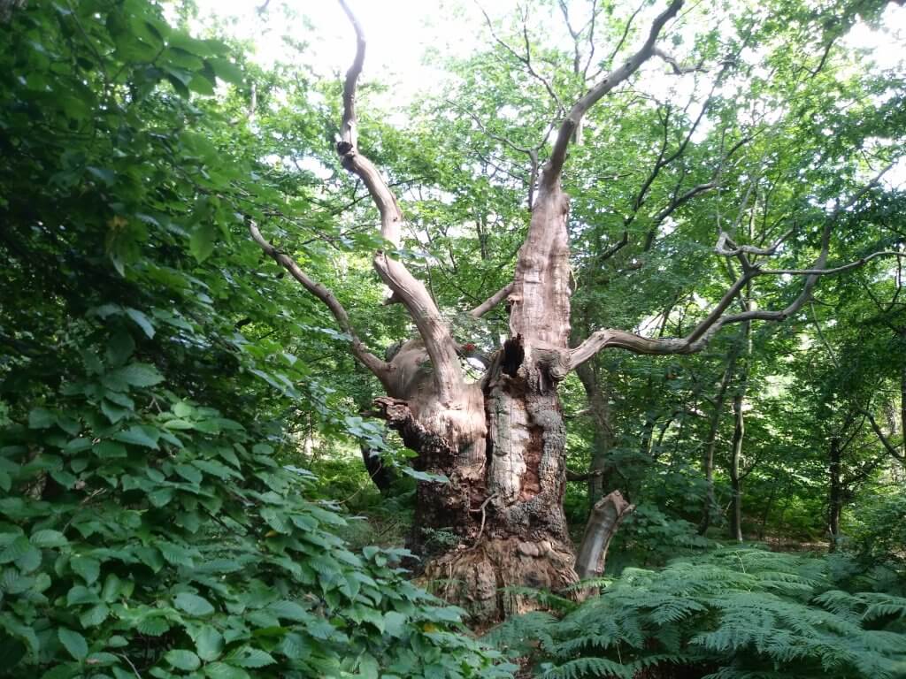 After lunch, Mrs. Stadler offered an isle tour. Because most parts of Vilm are covered by the core area of the biosphere reserve, there is only one path which leads around the northern part of the isle and guests must not leave it. Mrs. Stadler explained that animals like deer could migrate from the Island of Rugen to the Isle of Vilm (that is even smaller than one square kilometre) when the water is frozen in winter. However, the distance would be too long for smaller animals like squirrels. Our meeting host emphasised the enormous diversity of ecological conditions on that isle by giving the following example: Grapevine snails can be found on one side of the isle, but not on the other side. The reason is that one side of the isle has some lime that offers a favourable environment for the snails, whereas the other side is too acidic. I was impressed by all of the deadwood and old trees, which can rarely be found in German forests. However, the forest of Vilm cannot be considered a virgin forest in the strict sense because it was used by humans in the past. Mrs. Stadler showed us the oldest tree on the isle at roughly 600 years old. However, the tree is not alive anymore.