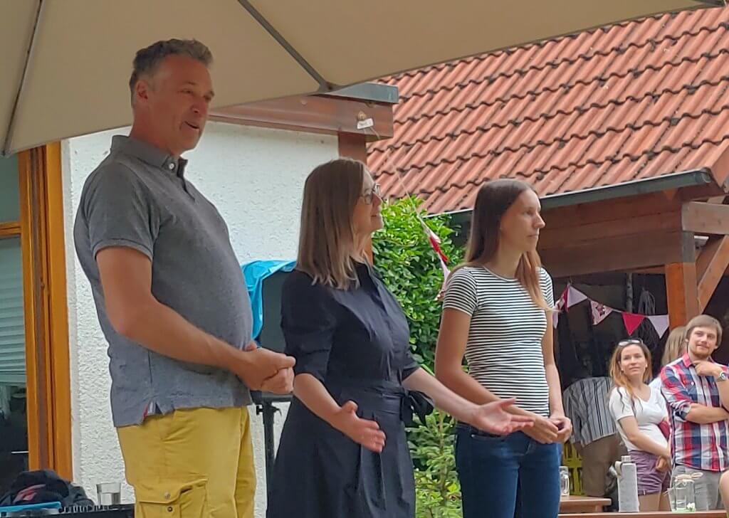 The Summer Fête is also a great opportunity for exchange between current GCE students and GCE alumni, who can shed a light on what they are doing, tips for the best outcome in the programme, and career prospects. Fortunately, some alumni were able to join us this year. Moreover, this gathering marked the presence of three generations of GCE coordinators: Volker Audorff (the first coordinator), Stephanie Thomas (current coordinator), and Anja Jaeschke (former-coordinator). Unfortunately, Sylvia Sprödhuber, current coordinator alongside Stephanie, was absent.