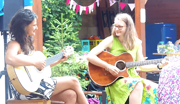And who thought that GCE students only thrive in academics? Think again! The get together also made it possible for students to perform, and we got beautiful presentations from GCE 2020 students Elena Wiese and Mira Rodrian, who sang and played the guitar. Songs with important messages about the planet — and of course a couple of pop hits — made the atmosphere at the Fête even more cosy, as everyone enjoyed the music and sang along with the girls.