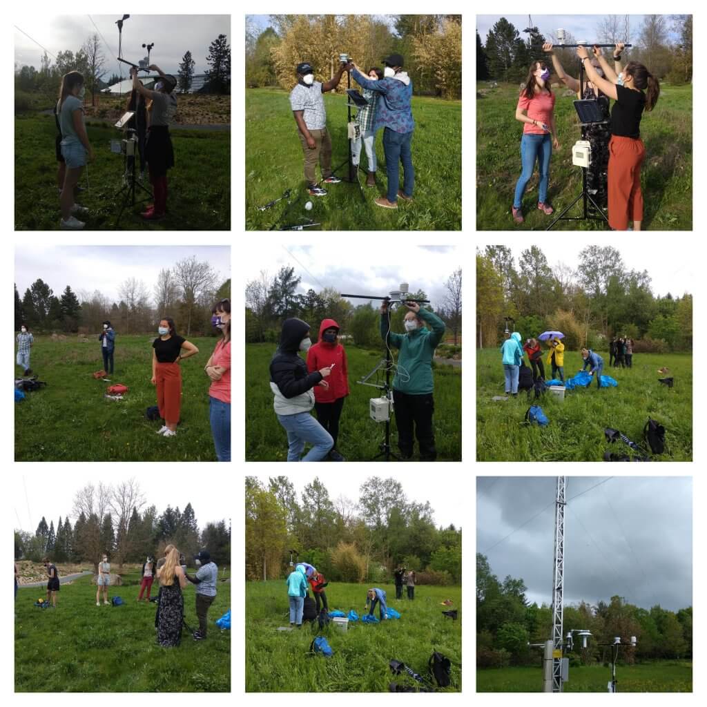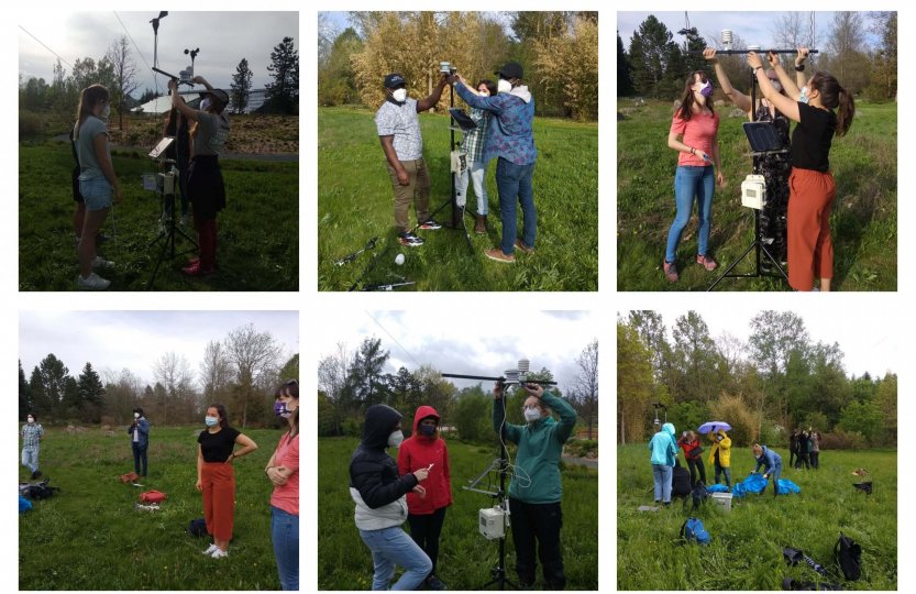 Sitting in the grass in a circle around the professor – some of us taking notes, others just paying attention – even the fact that we all were wearing masks was not a problem. We answered questions and discussed the topics. While we learned about how to set up the climate station equipment and how it works, we could remember the concepts we had already learned in the online seminar of the same course.